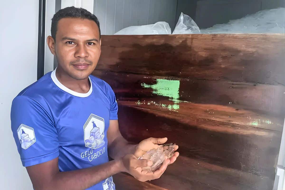 Antes da fábrica, os pescadores de Santa Helena do Inglês precisavam buscar gelo em Manaus, a cinco horas de barco. O custo incluía combustível, mão de obra e a perda pelo derretimento durante o trajeto.