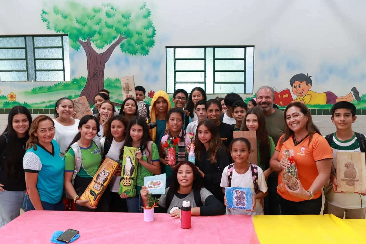 Na primeira etapa, alunos do 6º ao 9º ano participaram de oficinas práticas. O objetivo: transformar resíduos em esculturas inspiradas na fauna amazônica.