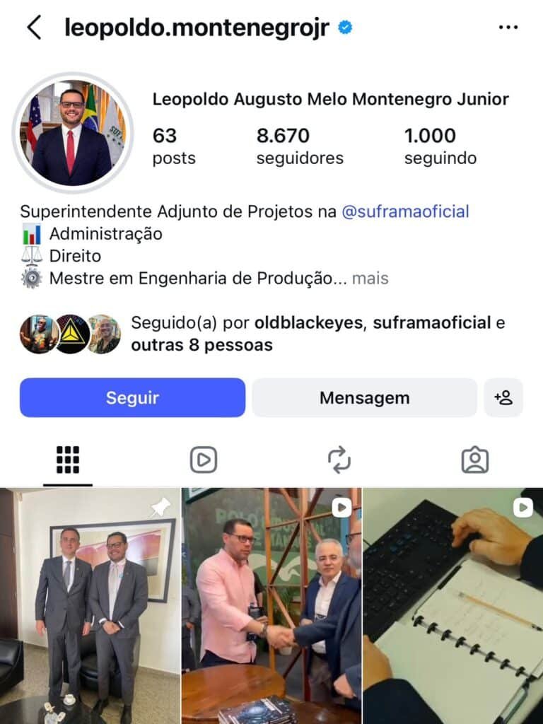 A nomeação para o cargo de superintendente da Suframa ainda não foi atualizada no perfil oficial de Leopoldo Montenegro